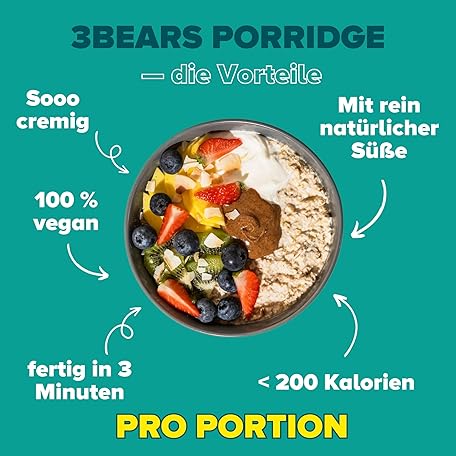 Sản phẩm 3Bears Porridge - Hearty Classic I 6 x 400 g Vegan Porridge with Whole Grain Oatmeal I With Pure Natural Sweetness and No Additives I Also As Oatmeal, Breakfast Porridge or Overnight Oats đang được bán với giá ưu đãi là $25.5278 tại nước Đức.
