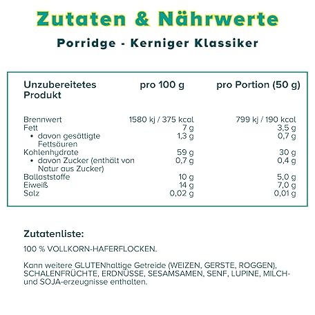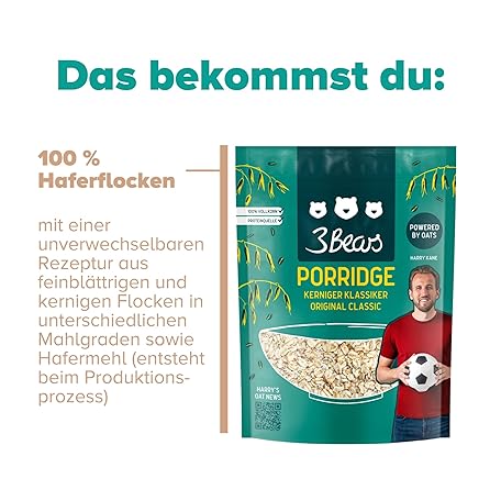 Thông tin sản phẩm 3Bears Porridge - Hearty Classic I 6 x 400 g Vegan Porridge with Whole Grain Oatmeal I With Pure Natural Sweetness and No Additives I Also As Oatmeal, Breakfast Porridge or Overnight Oats