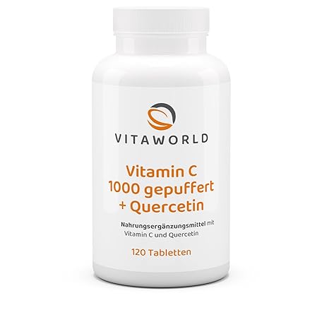 • 3er Pack Vita World Vitamin C 1000 gepuffert + Quercetin 3 x 120 Tabletten Vegan/Vegetarisch Apotheker-Herstellung
