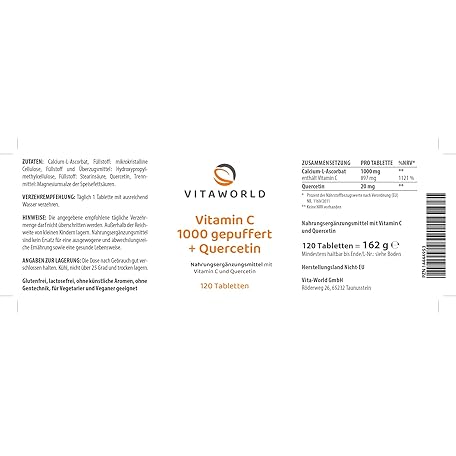 Sản phẩm 3er Pack Vita World Vitamin C 1000 gepuffert + Quercetin 3 x 120 Tabletten Vegan/Vegetarisch Apotheker-Herstellung đang được bán với giá ưu đãi là $0.2943 tại nước Đức.