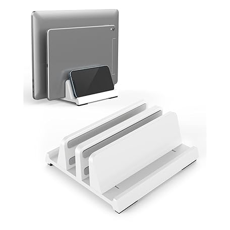 • 4-in-1 Vertikaler Laptop-Ständer - Verstellbarer Klearlook ABS Notebook Dock, Platzsparender Desktop-Laptop-Halter für MacBook/Surface/Galaxy/HP/Dell/Chrome Book/Tablets bis zu 17,3 Zoll - Weiß