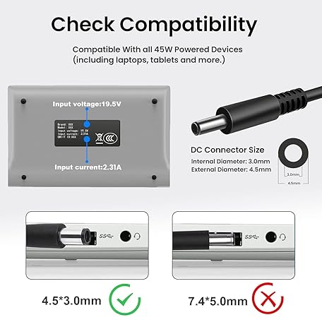 Sản phẩm 45W 19.5V 2.31A Power Supply Compatible with Dell Inspiron13 14 15 17 3000 5000 7000 Series 3583 5555 5570 7558 7595 Latitude 3410 3500 3390 LA45NM 140 HA45NM140 Power Supply đang được bán với giá ưu đãi là $22.7265 tại nước Đức.