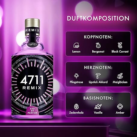 Thông tin sản phẩm 4711 Remix Electric Night Eau de Parfum, 100 ml: Damen Parfüm mit Zitrone, Pfingstrose, Zedernholz, Vanille – elektrisierender, intensiver, unwiderstehlicher Duft für Frauen