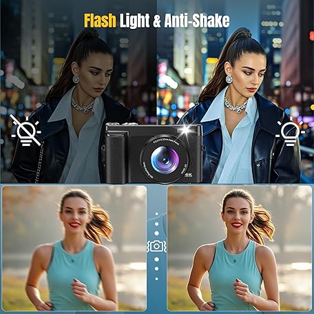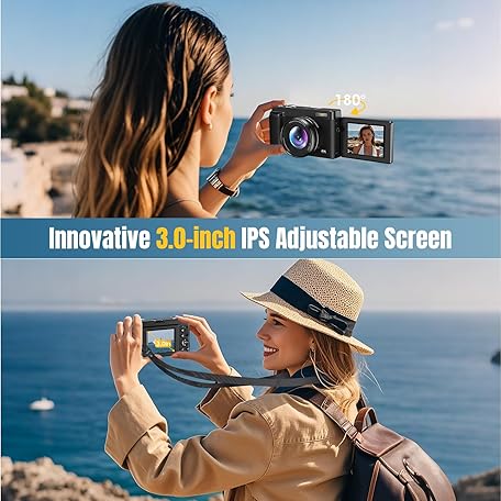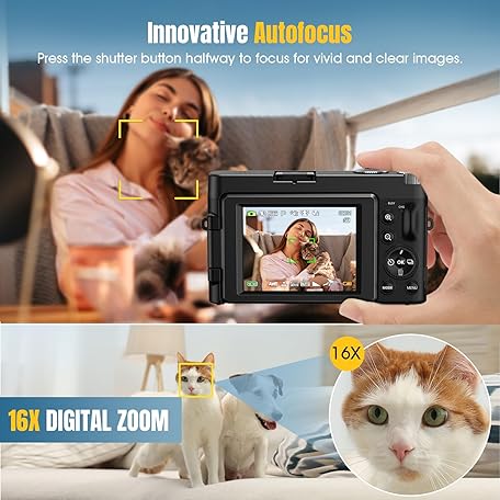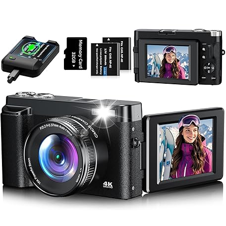 Thông tin sản phẩm 4K Digitalkamera 48MP Autofocus Kompaktkamera Fotokamera mit 32GB Karte, 3 Zoll 180° Flip-Bildschirm, 16X Digital Zoom Kompaktkamera Fotoapparat mit 2 Batterien für Anfänger(Schwarz)