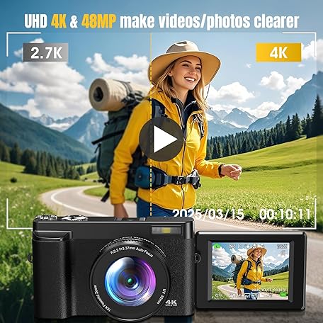 Sản phẩm 4K Digitalkamera 48MP Autofocus Kompaktkamera Fotokamera mit 32GB Karte, 3 Zoll 180° Flip-Bildschirm, 16X Digital Zoom Kompaktkamera Fotoapparat mit 2 Batterien für Anfänger(Schwarz) đang được bán với giá ưu đãi là $112.5752 tại nước Đức.