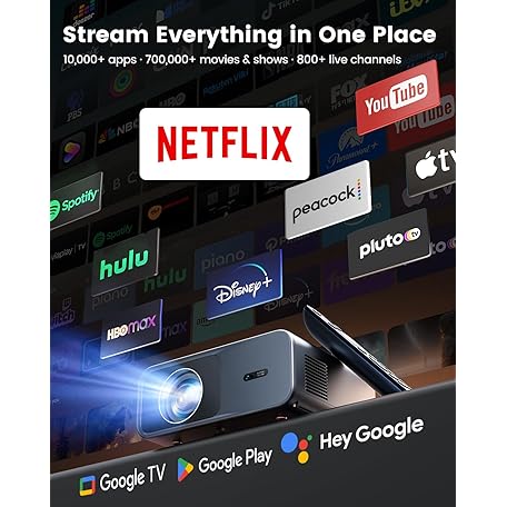 4K Projector with Google TV & Netflix/Disney+, Dolby Audio, 1000 ANSI Smart Projector 4K Autofocus Keystone Correction, HDR10, Voice Control, WiFi Bluetooth Full HD 1080P Home Cinema / Outdoor Projector HDMI ARC