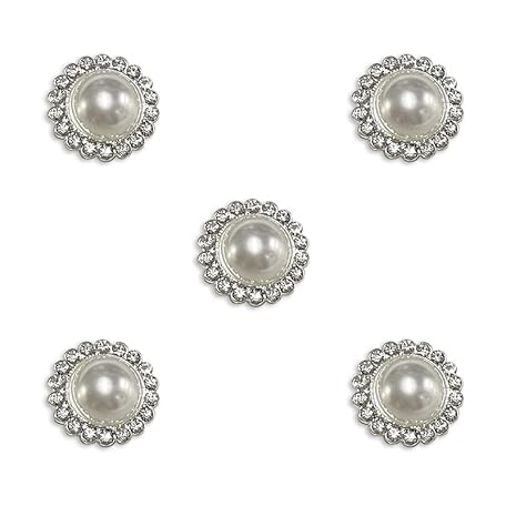 5 Pieces 22mm Bead Inlaid Diamond Metal Buttons - Chic Haute Couture Suit Coat Button - DIY Handmade Clothing Accessories Sewing Buttons 22mm Round (White)