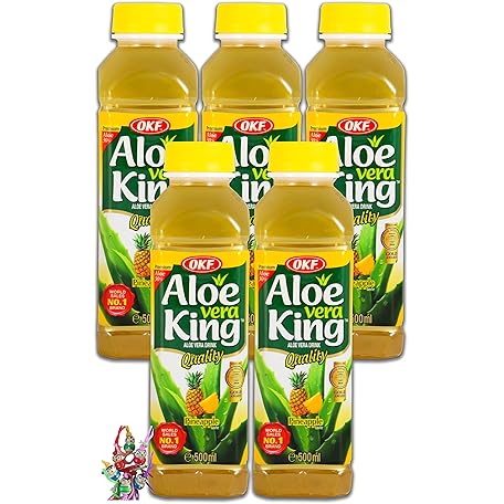 Sản phẩm [5 x 500 ml] Aloe Vera King Drink Pineapple / Aloe Vera Drink Includes 5 x €0.25 Disposable Deposit + a Small Lucky Pendant Free đang được bán với giá ưu đãi là $15.4344 tại nước Đức.