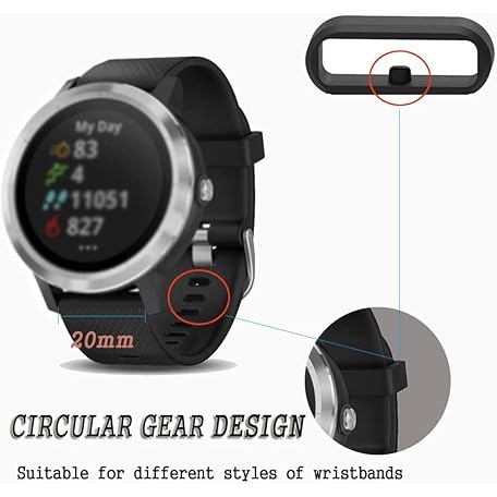 Thông tin sản phẩm 6 watch strap loops, 20 mm closure ring compatible with Garmin Vivoactive 3 wristband/Forerunner 245/645 and Vivoactive 3 Music/Venu/Vivomove/Vivomove 3/Fenix 6S/5S etc., loops, 20 mm, Silicone, Agate