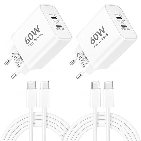 60W 2-Port USB C Ladegerät mit Ladekabel für iPhone 17 Pro Max 17 Air, iPhone 16 15 Pro Max Plus 16e, iPad 10/11/A16, 40W USBC Netzteil Stecker Adapter Schnellladegerät + 2M Schnellladekabel 2-Pack