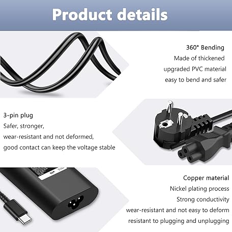 Sản phẩm 65W USB C Laptop Charger Compatible with Dell Latitude 7490 7320 7420 2-in-1 5420 5520 5290 XPS 13 9320 9370 9510 Latitude 9410 2-in-1, Chromebook 3380 3100 5190 đang được bán với giá ưu đãi là $17.7779 tại nước Đức.