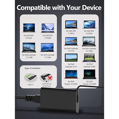 Sản phẩm 65W USB C Laptop Charging Cable Power Supply for Dell Latitude 5490 5410 5420 Xps 13 15 12 9360 9370 Chromebook 5300 3100 Charger Adapter đang được bán với giá ưu đãi là $12.8184 tại nước Đức.