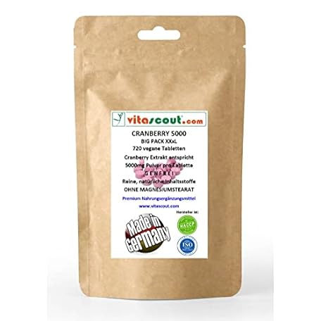 Sản phẩm 720 Tablets Cranberry Extract 5000 – Cranberries – Best Price on the Net – No Magnesium Stearate – Made in Germany đang được bán với giá ưu đãi là $34.6075 tại nước Đức.