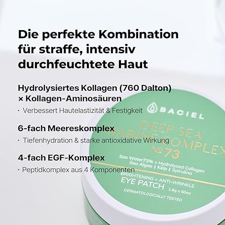 Sản phẩm 73% Seawater Collagen & EGF Eye Pads I Anti-Wrinkle (Fine Lines) I Niacinamide for Brightening I Korean Skincare By BACIEL (30 Paia) đang được bán với giá ưu đãi là $27.8822 tại nước Đức.
