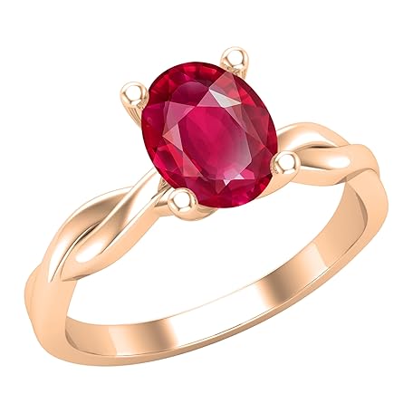 8mm x 6mm Oval Created Ruby Twist Engagement Ring for Women 18K Solid Gold