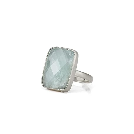 • 925 Sterling Silber Rechteckiger Aquamarin Ring - März Geburtsstein für Frauen - Aqua Blue Edelstein - Großer Stein Design - Stapelbar mit Rhodium Finish
