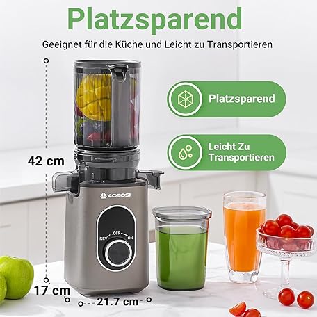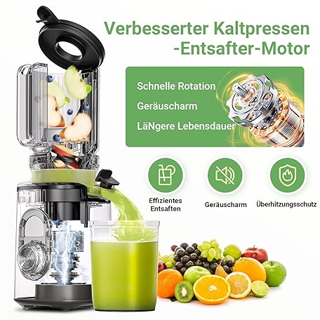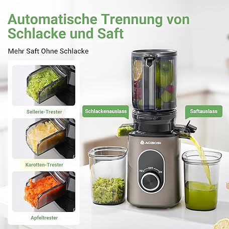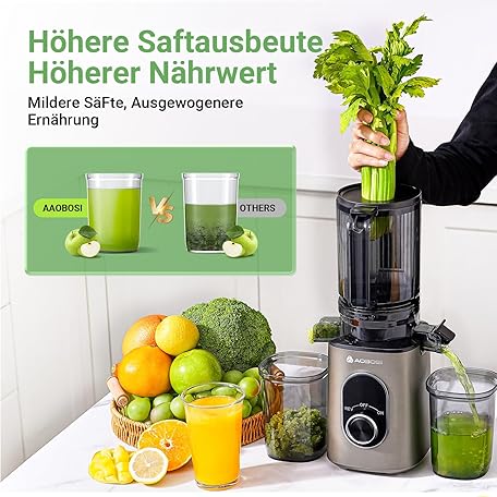 Sản phẩm AAOBOSI Entsafter mit 110 MM Öffnung,Slow Juicer für Gemüse und Obst,Hohe Saftausbeute,Saftpresse Elektrisch mit Rückwärts Funktion,Leicht zu Reinigen,BPA-Frei,Inklusive Bürste und 2 Tassen đang được bán với giá ưu đãi là $115.1476 tại nước Đức.