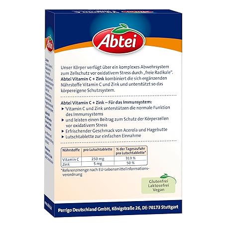 Sản phẩm Abbey Vitamin C Plus Zinc 30 Tablets 5000010028 30 đang được bán với giá ưu đãi là $3.7387 tại nước Đức.