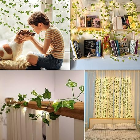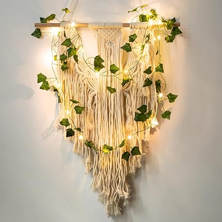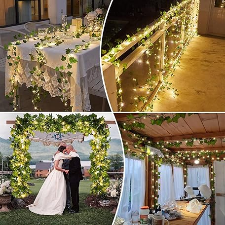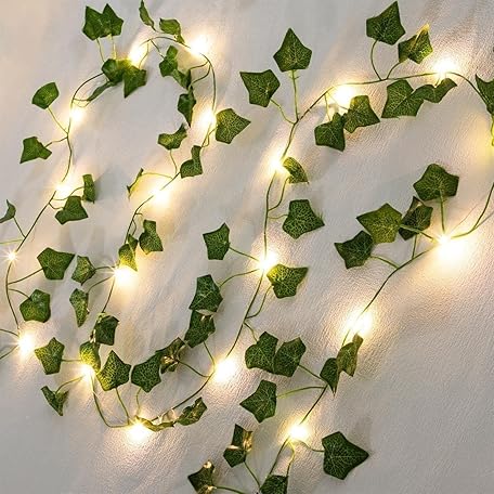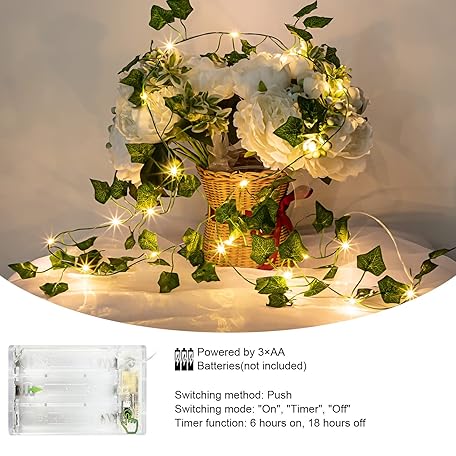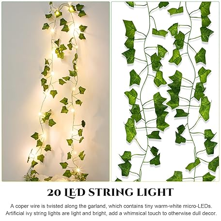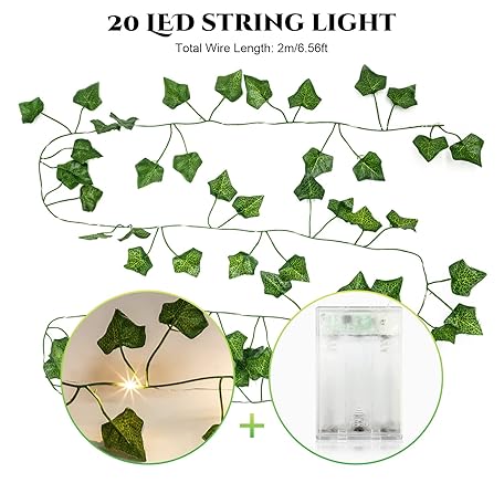 Thông tin sản phẩm A.bigwhale Fairy Lights with Leaves, Artificial Ivy with Fairy Lights, Ivy Garland Fairy Lights Indoor 2 m, Green Leaf Ivy Vine with 20 LED Lights, Spring Plants Decoration for Wedding Party