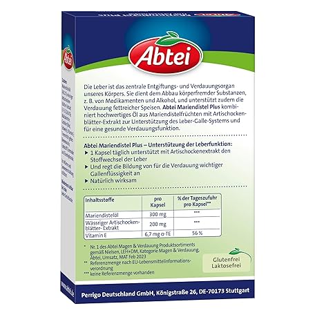 Sản phẩm Abtei Milk Thistle Plus with Artichoke - Supports Liver Function - Promotes Fat Digestion - Laboratory Tested and Naturally Effective - 30 Capsules, Digestive System Health đang được bán với giá ưu đãi là $4.36 tại nước Đức.