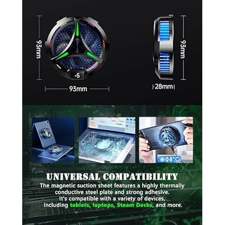 Thông tin sản phẩm ACEDAYS Magnetischer Kühler für iPad, Tablet-Kühler für iPad/Surface Pro/Samsung Tab, universeller Heizkörper mit Temperaturanzeige für mobiles Gaming, Tiktok Live-Streaming (inkl.