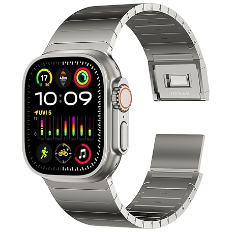 ACESTAR Voll-Titan-Armband, kompatibel mit Apple Watch Ultra 3/2/1, 49 mm / Serie 10, 46 mm, 24 mm breit, verstellbare Glieder mit Titan-Magnetverschlussanschlüssen und DLC-Beschichtung