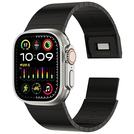 ACESTAR Voll-Titan-Armband, kompatibel mit Apple Watch Ultra 3/2/1, 49 mm/Serie 10, 46 mm, 24 mm breit, verstellbare Glieder mit Titan-Magnetverschlussanschlüssen und DLC-Beschichtung