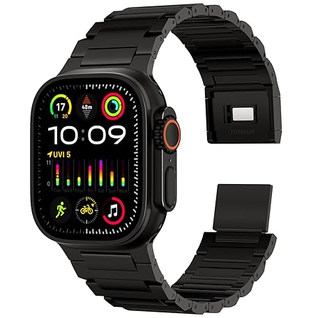 ACESTAR Vollständiges Titan-Armband, kompatibel mit Apple Watch Ultra, schwarz
