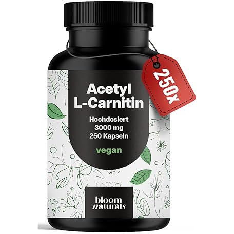 Acetyl-L-Carnitine - 500 mg per capsule - 250 capsules - 3000 mg per daily serving - vegan - produced in Germany - acetyl L carnitine capsules high dose - packaging may vary - laboratory tested