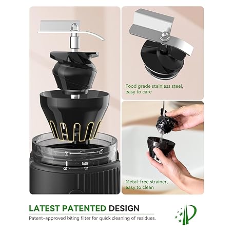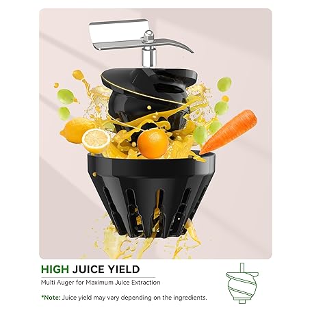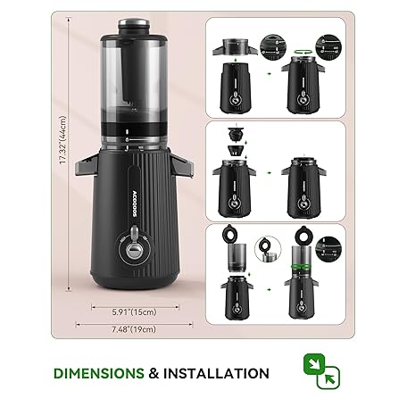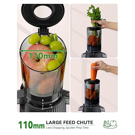 Thông tin sản phẩm ACOQOOS Juicer, Juicer Vegetable and Fruit with 110 mm Filling Opening, Easy to Clean Slow Juicer Machine with 2 Cups, Black