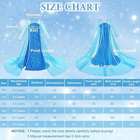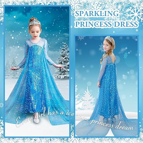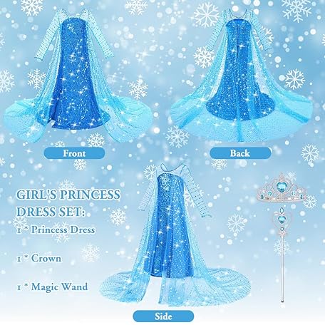 Thông tin sản phẩm ACWOO Elsa Costume Girls, Elsa Girls Princess Costume, Elsa Costume Accessories for Girls, Elsa Dress Kids Set with Crown Wand for Halloween, Christmas, Carnival Party