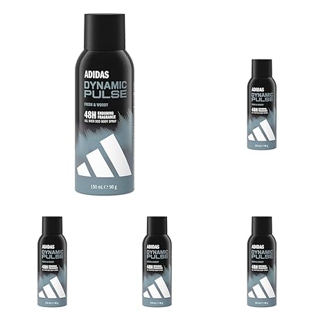 adidas Dynamic Pulse Deo Body Spray für ihn, 48 Stunden extra-langanhaltender Duft, frisch-holzig, 150 ml (Packung mit 5)