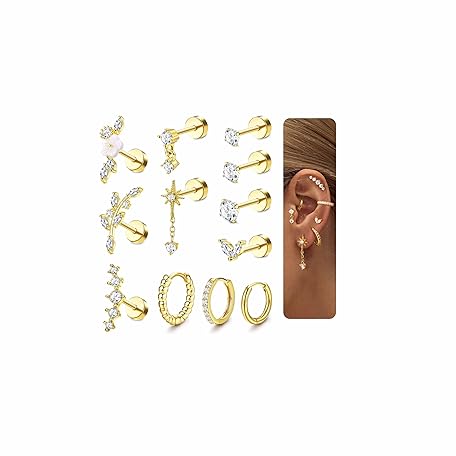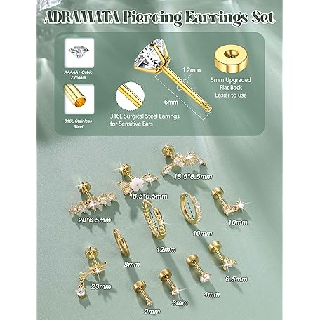 Sản phẩm Adramata 12Pcs Helix Piercings Chirurgenstahl Ohrringe Piercings Set CZ Ohr Piercings Ohrstecker Knorpel Ohrringe Damen Klein Ohrring Creolen Gold Silber Conch Helix Tragus Piercing Ohr Schmuck đang được bán với giá ưu đãi là $17.7452 tại nước Đức.