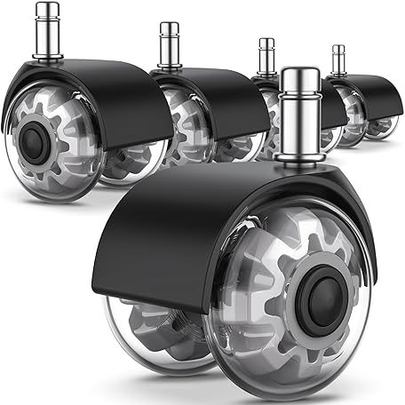 Aevcvok Bürostuhl Rollen 10mmx22mm, 5er Set Gummirollen für Bürostühle,Bürostuhl-Räder Ersatzrollen Drehstuhlrollen,Super Leise Hartbodenrollen für Bürostuhl