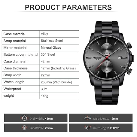 Thông tin sản phẩm Affute Men's Quartz Watches in Stainless Steel and Metal, with Casual Waterproof Chronograph, Auto Date, and Colourful Hands