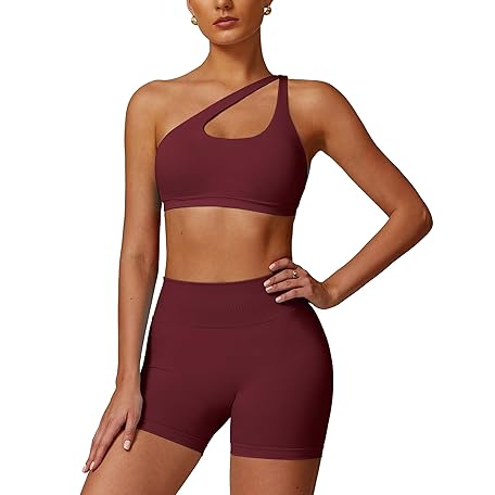 AGYMNX 2-teiliges Workout-Set für Damen, hohe Taille, nahtlos, Butt Lifting, Shorts, Fitnessstudio, Yoga, Outfit, dehnbare Sport-BH-Sets, Weinrot, X-Large