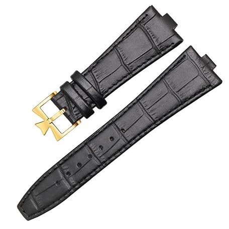 AHGDDA Das Echtlederarmband ist für die Edelstahlschließe Vacheron Constantin OVERSEAS Series 4500V 5500V P47040 geeignet(Black Gold)