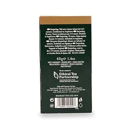 Sản phẩm Ahmad Tea Darjeeling Tea | Black Tea | 20 Tea Bags of 2g | Tea Bags with Ribbon đang được bán với giá ưu đãi là $3.4553 tại nước Đức.