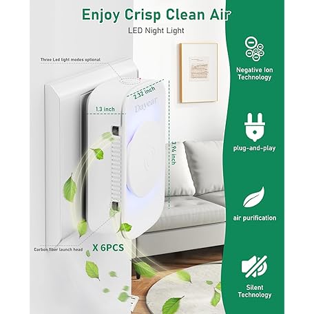 Thông tin sản phẩm Air Purifier, Dayear Air Purifier Ionizer Generator, Plug in Negative Ion Air Purifier for Office, Room, Bathroom, 1 Piece