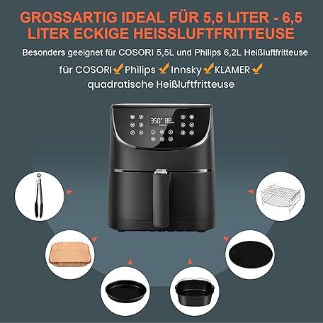 Sản phẩm Airfryer XXL Accessories Hot Air Fryer Accessories XL 5.5 L Square, Hot Air Fryer Accessories with Baking Paper Hot Air Fryer Fits Cosori Philips Innsky KLAMER 5.5 L 6.2 L Air Fryer đang được bán với giá ưu đãi là $37.9211 tại nước Đức.