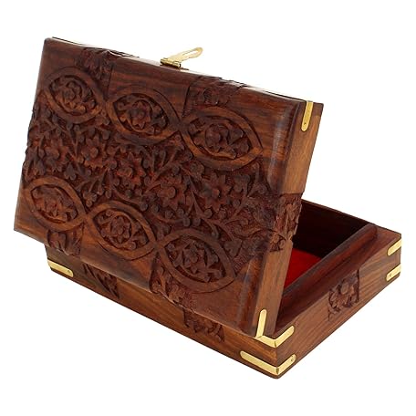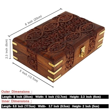 Thông tin sản phẩm Ajuny Jewellery Box, Hand-Carved, Wooden, Decorative, Flower Carvings, Multipurpose Storage Organiser, Keepsake, 20 x 12.5 x 6.5 cm
