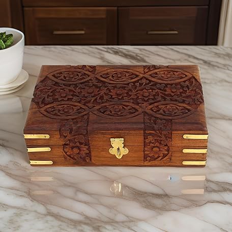 Sản phẩm Ajuny Jewellery Box, Hand-Carved, Wooden, Decorative, Flower Carvings, Multipurpose Storage Organiser, Keepsake, 20 x 12.5 x 6.5 cm đang được bán với giá ưu đãi là $24.1762 tại nước Đức.