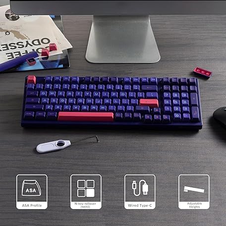 Thông tin sản phẩm Akko Neon 3098 Mechanical Gaming Keyboard, 1800 Compact Full Size Keyboard with Number Keys, 100% Anti-Ghost, Linear Switch, ASA PBT Purple Keycap, Cyberpunk Style, for Win/Mac