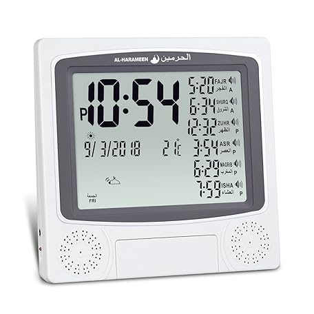 AL-HARAMEEN AL-HARAMEEN, Azan Clock Prayer Times Table Clock Muslim Digital Alarm HA-4010 (Grey)