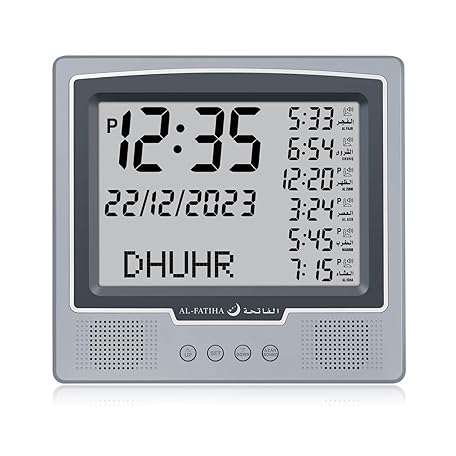 Al salama Al salama Azan Alarm Clock Table Clock, Automatic Worldwide Digital 8 Azan Prayer Tones, Muslim Prayer Clock for Home Decor, Ramadan Gift (Grey)