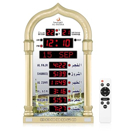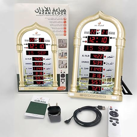 Sản phẩm Al salama Al salama Azan Clock, LED Muslim Prayer Clock, Athan Wall Clock, Reading House/Office/Mosque Digital Azan Clock Home Decor (Gold) đang được bán với giá ưu đãi là $82.5784 tại nước Đức.