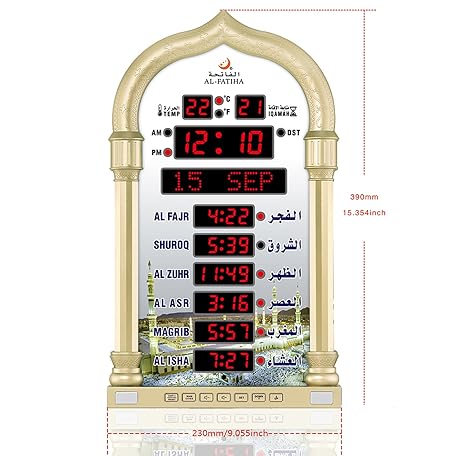 Thông tin sản phẩm Al salama Al salama Azan Clock, LED Muslim Prayer Clock, Athan Wall Clock, Reading House/Office/Mosque Digital Azan Clock Home Decor (Gold)