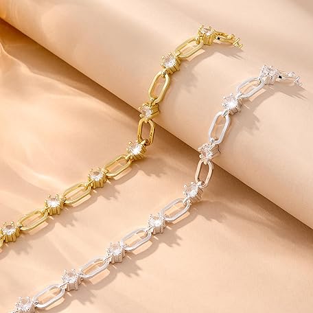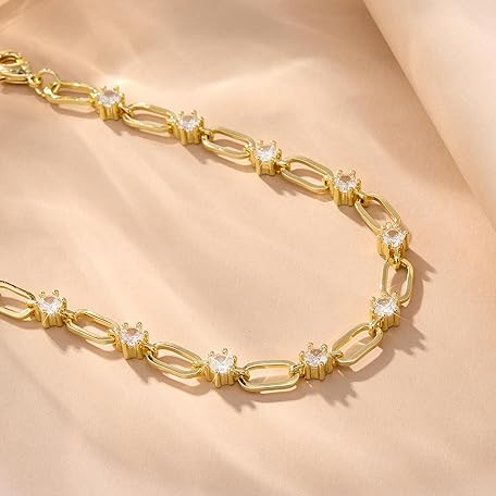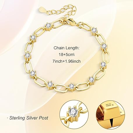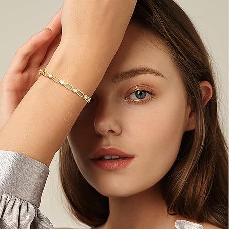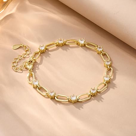 Thông tin sản phẩm Alexcraft Bracelet for Women Hypoallergenic 14K Real Gold-Plated 925 Sterling Silver Adjustable Bracelet with Zirconia Ball, Cuban Brass Bracelet Anklet Choker Paper Clip Bracelet Chains