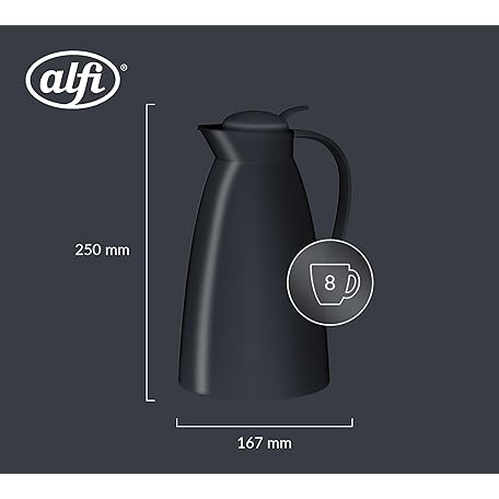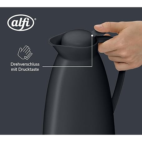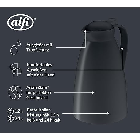 Sản phẩm alfi 0825.020.100 vacuum jug Eco, frosted plastic black 1.0 l, 12 hours hot, 24 hours cold đang được bán với giá ưu đãi là $16.3064 tại nước Đức.
