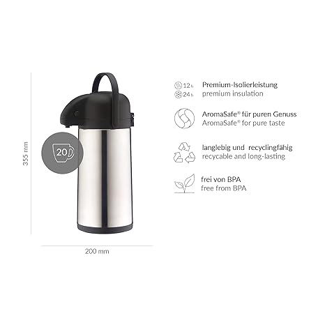 Sản phẩm alfi 0837205250 Pumpkanne TT Edelstahl mattiert 2,5 l đang được bán với giá ưu đãi là $56.9961 tại nước Đức.